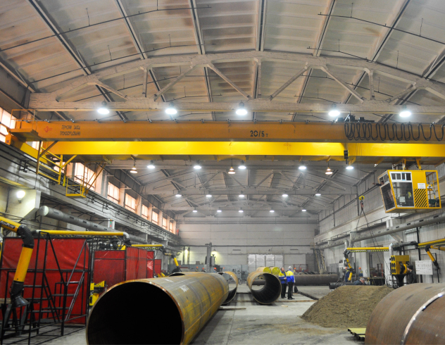 Кран мостовой грузоподъемностью 20 т устанавливается в различных цехах, на складах, а также для поднятия и транспортирования груза на открытом воздухе. В зависимости от требований, мостовой двухбалочный механизм может укомплектовываться магнитами, ковшом или грейфером.